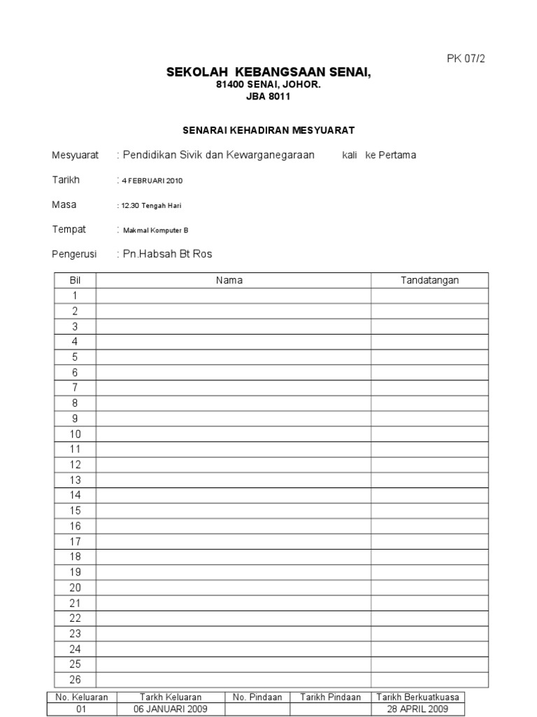 Contoh Senarai Kehadiran Mesyuarat / Sebelum ni saya pernah share cara untuk buat borang kehadiran menggunakan google form yang sesuai digunakan untuk mesyuarat, taklimat dan.. Senarai bahan bantu belajar dan kedudukannya. Senarai buku teks dan rujukan. Download as doc, pdf, txt or read online from scribd. Borang pk 07 2 senarai kehadiran mesyuarat doc. Sebelum ni saya pernah share cara untuk buat borang kehadiran menggunakan google form yang sesuai digunakan untuk mesyuarat, taklimat dan.