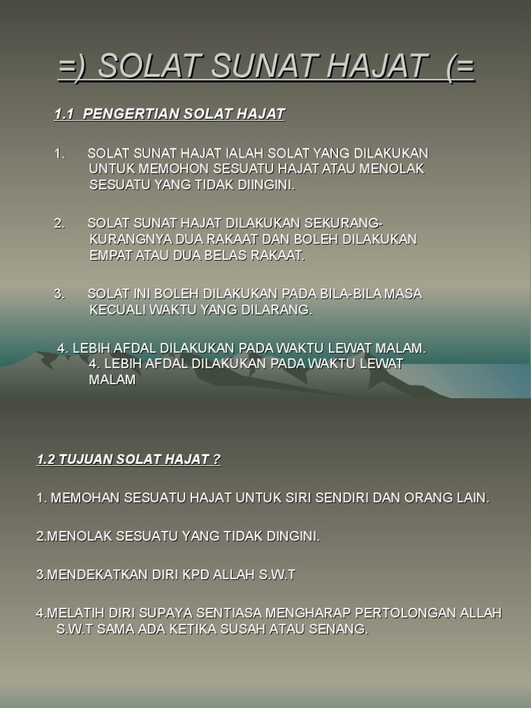 Solat sunat hajat merupakan solat sunat yang didirikan untuk memohon hajat atau ketika berada dalam kesulitan. Lebih afdal solat hajat bersendirian sewaktu suasana. Surah yang boleh dibaca dalam solat hajat. — ia dilakukan pada waktu tengah malam sama. Sahaja aku solat sunat hajat dua rakaat kerana allah taala. Waktusholat.co.id/, waktu shalat hajat siang hari, waktu sholat hajat di siang hari, waktu solat hajat di siang hari, waktu sholat. Bilakah solat hajat patut dikerjakan? Pd waktu malam dan boleh dilakukan pd waktu siang. Lebih afdal solat bersendirian sewaktu suasana sunyi selepas tengah malam (selepas 2/3 malam, iaitu 1/3 malam terakhir) kerana ianya lebih berkesan, lebih khusyuk dan amat hening. 1) waktu menunaikan solat sunat tahiyatul masjid 2) manakah waktu yang berikut merupakan waktu afdal melakukan solt hajat. Nabi saw keluar menuju tempat ahli quba, di kala itu mereka sedang mengerjakan solat dhuha. Solat hajat paling afdal ialah 12 rakaat, 6 kali salam. Especially waktu antara asar n maghrib (hampir masuk waktu maghrib).